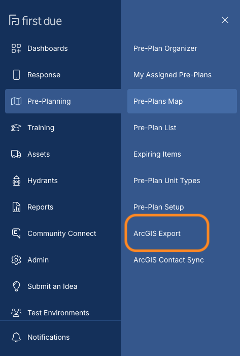 Log into FirstDue and click on ArcGIS Export